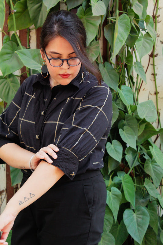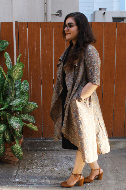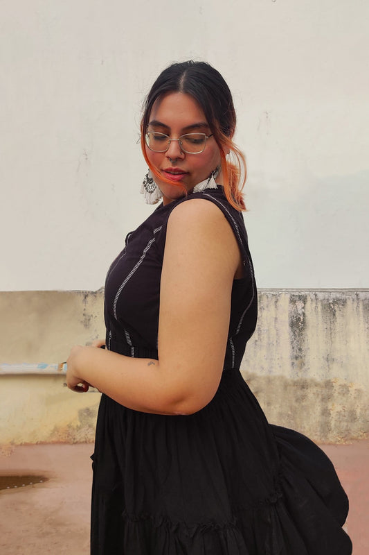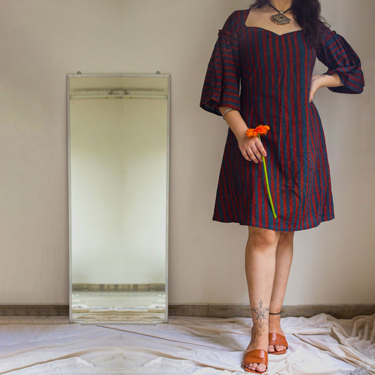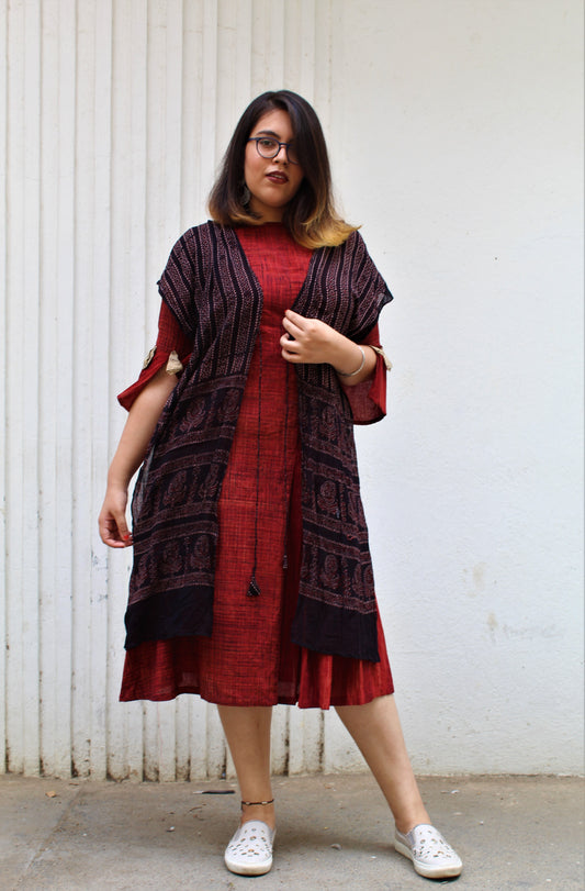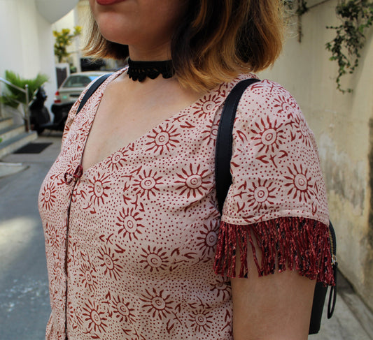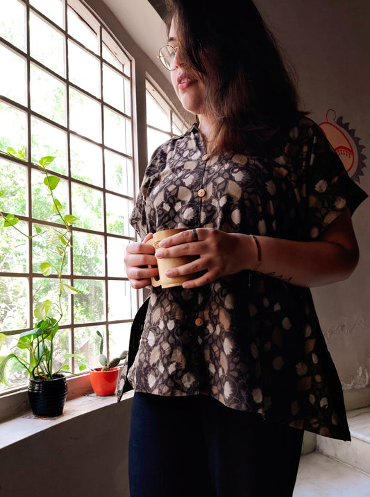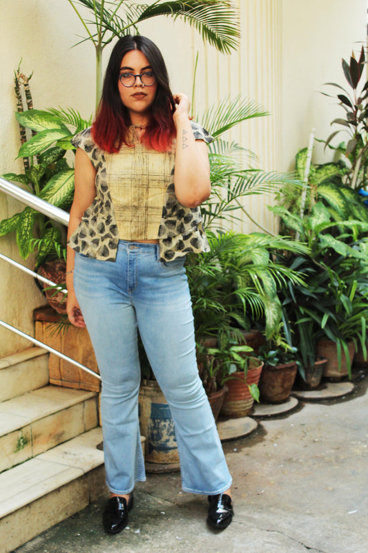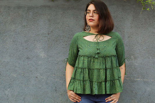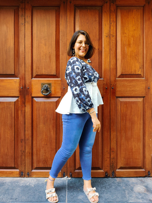 Chakra is what we're enjoying wearing this summer. A criss-cross bodice, soft mul cotton teamed with a naturally dyed organic cotton to form beautiful box pleats adding a contrast; breathable & unconventional. The pieces from this collection are constructed using hand-crafted Ajrakh fabric made from natural dyes, organic cotton & hand-blocked prints, and pure Mul cotton.